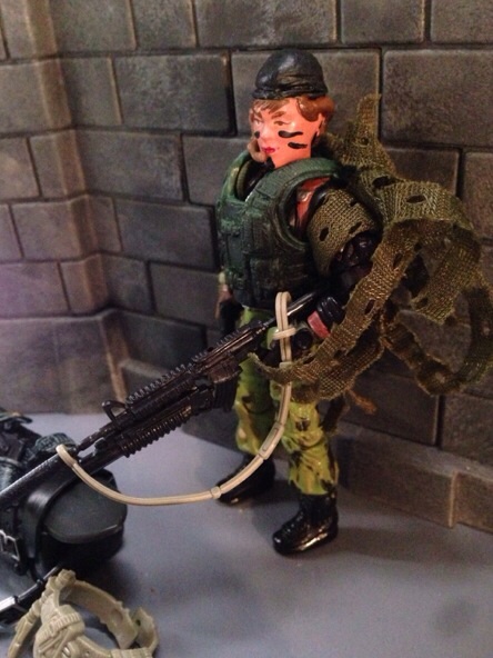 Her natural instincts for stealth got her assigned to a number of top secret ops, which gave her combat experience which in turn advanced her through the ranks quicker than some of her fellow enlistees, and the black ops work put her into recruitment candidacy for GI Joe, where she was selected almost immediately. Her unusual preference for carrying, and fighting with, a sharpened trenching tool, and her method of concealing downed foes earned her the code name Digger.