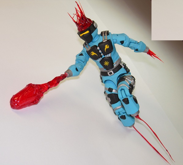 Accessories: Clear Ninja Force axe + swords, modified with hot glue. Everything else is hot glue.