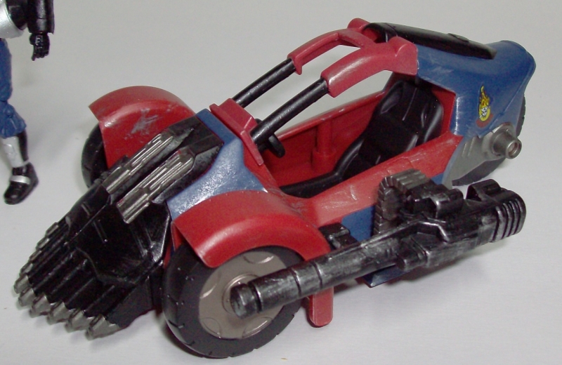 When the Rise of Cobra movie toys were being clearance, I picked up a bunch of Rip Attack Tiger Snakes for 3$ each at Wal-Mart. The included Street Viper is a pretty decent figure. However, I got stuck with all the less than useful vehicles. I donated all of them except one. This custom came about because I figured that I would try my hand at salvaging the original toy. I decided to give it a Dreadnok color scheme similar to the Thunder Machine and created a driver for it: Ruckus.