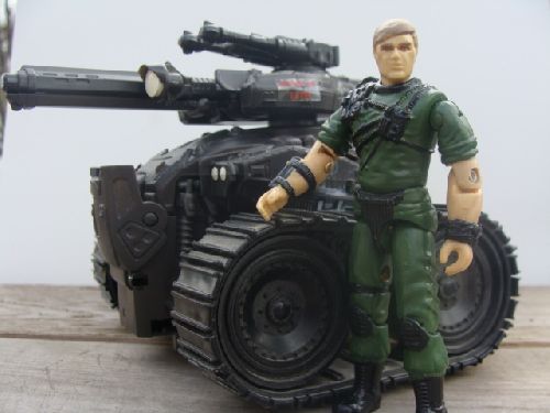 Shock is heavily armed and just as heavily armored. There is room on the back for a Joe to stand.
