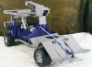 I started this one a long time ago, back when I was putting vehicles with just brute force and no fineness. So I started by having to take the entire thing apart and rebuild it cleaner and sharper. The overhead rack is for carrying loose debris. I added the crane primarily to provide a way to load large debris onto this rack. I always thought the Road Toad would be much cooler if it was a self-propelled vehicle rather then just a trailer.