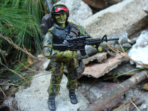 As for moficiations here; I sanded down parts of the Mainframe chest and the BBI grenades, and BBI holster with a removable pistol. On the Mainframe legs I sanded down the radio and added a canteen and pouches.
