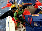 Hearing that Cobra was testing deadly new Sonic Weapons, Hawk wanted to personally handle this. He equips himself with a Sonic absorbing flight suit, dual thrust hyper-sonic jet pack with two air-to-surface missiles and a gyro-stabilizer. He's also armed with a rapid fire sonic pulse cannon.