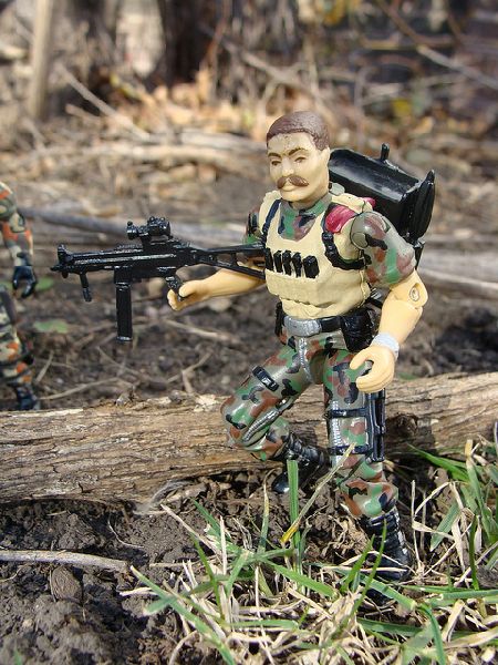 In a box of custom fodder I received was an '87 Gung-ho head with the hat torn off, and I was surprised to see there was hair molded underneath. I looked at the eyes and the shape of the head, and thought it was perfect for Beach Head. He also has the 'stache, which I always figured Beach Head would have.