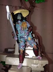 This is based on one of the unreleased 'Concept Case' ninjas that Hasbro showed at a convention several years ago. It's pretty different, but still achieves the same look, I feel. As an additional bonus, it is mostly built from parts I would have otherwise not had any use for, so that's always good, as is the fact that he took very little paint, so he's totally playable. A little blood splatter and the head modifications keep him from being an LBC