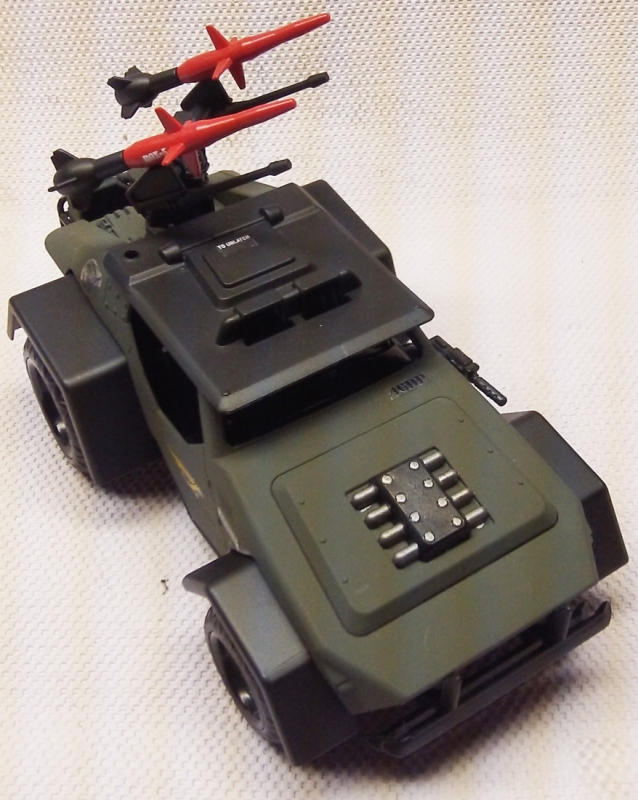 Used primarily for reconnaissance and quick strike missions, the Dire Wolf's main weapon is the dual radar tracking Surface-to-Air/Surface-to-Surface missiles. Supporting the weapons and controlled by the same radar tracking are two 20KW lasers. There is also a side mounted .30cal machinegun that can be fired by the driver.