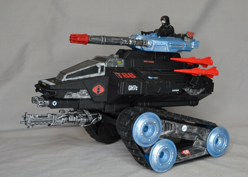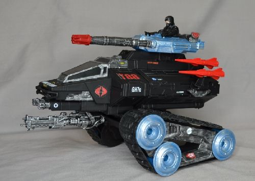 Cobra's latest main battle tank is HISS, the high speed sentry. Canopy opens, tank body raises, and cannons swivel. Includes removable drones and driver SABOT-VIPER!