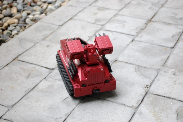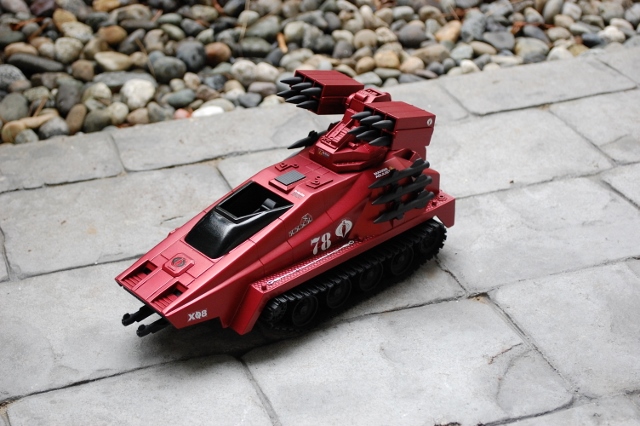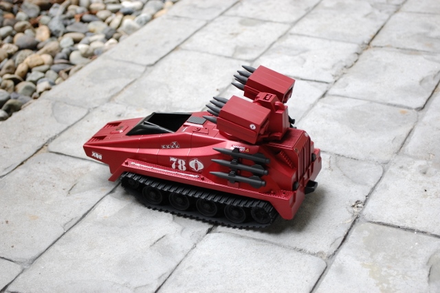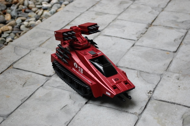 The GI JOE Persuader is a very under appreciated vehicle in my opinion. One thing it's missing is a way for the driver to see. Also it has six missiles on the side but no way of firing them. First I added treads and the missile launcher from the Wolverine. I also added the Wolfs cannon under the front. I painted it metallic red then painted part of the body black where it should be a canopy similar to the original Hiss.