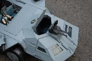 This was a fantastic amount of work. I had it build a support that would hold the cannon base level inside the Rolling Thunders body. Then I had to reshape the whole back so I could use the smaller rear guns. A ton of styrene was used to cover all the gaps so it looks like it's all one piece. The side guns are made from Scrap Irons missile launchers and Thunder Machine front guns. They are attached with small bolts so they can swivel. The Stun wheels covers just give it a real over the top Cobra look. It also has a fully functional top hatch as well as scratch built window armour and a ton a small paint details inside that unfortunately can't be seen. I have more hours in this than any other custom I've built. I'm very, very pleased with this one.
