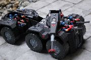 Easily one of my favorites. Everything I wanted to do to this vehicle just worked out perfectly. The Detonator is such a cool looking vehicle once you strip all the orange parts off it. To replace the Nerf rocket launcher I chose the Lynx cannon, it's the perfect size for the vehicle. I used two Whale turrets in the back where the vehicle already has two holes from it's original guns. I didn't like the teeth bumpers so I removed those and also added a canon to the front. The Rolling Thunder wheels caps and tons of painted detail help set off the flat black body and the red logos to give it a classic Cobra look.