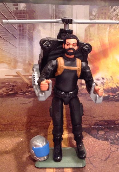 This was one of the figures I made for the 2003 JoeCon FrankenJoe contest. I made this Joe in the Black Widow Rendezvous style. Used the vintage Action Pack helicopter repainted and a Spytroops Coil helmet to help complete him. I also used model car carpet flock to give him "Life Like" hair.
