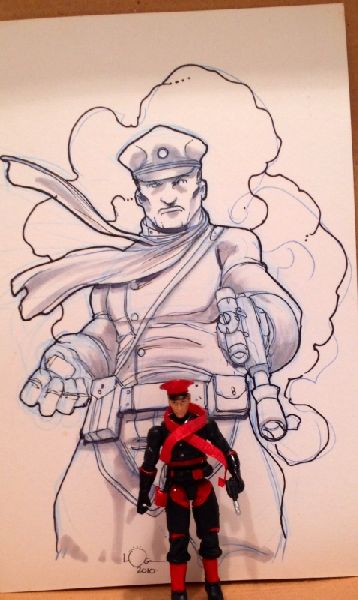 This was the figure I made at the Rhode Island JoeCon custom class. At the Class Hasbro had one of their package artist for Joe there. He was doing card art sketches of the figures that we made for us. I made this guy at first as an unmasked Wild Weasel, but decided to make him a pilot for the Red Shadows.