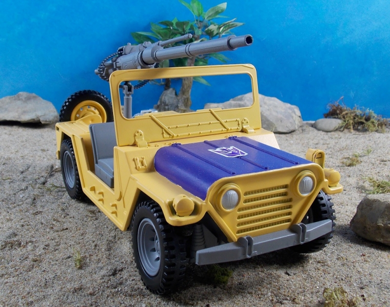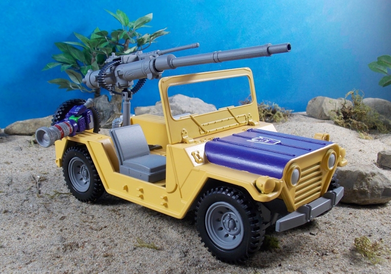 To build on this, I turned to my second favorite member of the Combaticons - Swindle. The build was easy as the PTE jeep is already very similar to Swindle's G1 cartoon vehicle mode (His toy was actually a completely different vehicle). The hardest part was finding the proper yellow color. It took me a few weeks of searching hobby shops and craft stores. I finally found Krylon Fusion gold that is almost a perfect match.