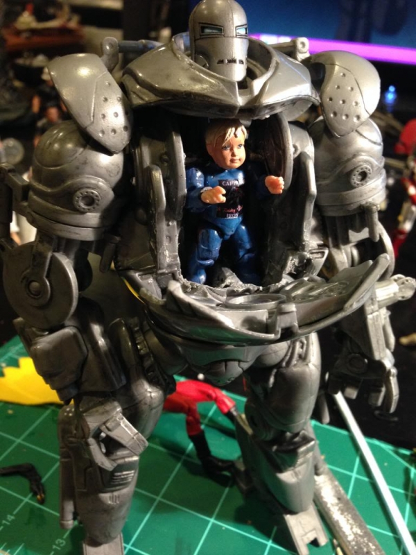 The figure is a decently articulated toddler, and is versatile enough to be used in other settings. One example is him inside of the mech in one of the pictures. I envision this as being a funny side story from time to time in the sci-fi setting.