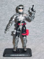 As Destro's engineers began their task he searched the ranks of his Iron Grenadiers for a volunteer. It had to be one who possessed leadership skills and was a loyal soldier. As if put in place by fate, about the time that the engineers had designed a well functioning system, an Iron Grenadier Lieutenant was attacked by several of Croc Masters pets. In spite of the IG armor, the young Lieutenant was on the brink of death. The crocs had torn off his arms and legs and had severely maimed his remaining body. He was offered a chance to become whole again. Not just whole, but super-humanly powerful. His mechanical limbs, electronic implants, and armor for his remaining humanity were made from an ultra-hard, yet light weight titanium alloy. It was even used to reinforce his remaining bone structure. He was also injected with performance-enhancing muscle amplifying chemicals to make his remaining living tissue strong and durable. He's like something out of a comic book or movie, a "Sci-Fi" comic or movie. Therefore deemed Sci-Fi by Destro.