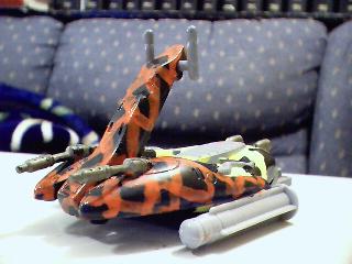 Yes, I realize the paintjob didn't turn out well. For those that wish to know, the markings on the missile are part of a message and joke that's age old in form, but still carries meaning. What it reads is a message to Cobra and any other terrorists G.I. Joe and Tiger Force might face, a reminder of the day when America stood up and told them all, "No more."