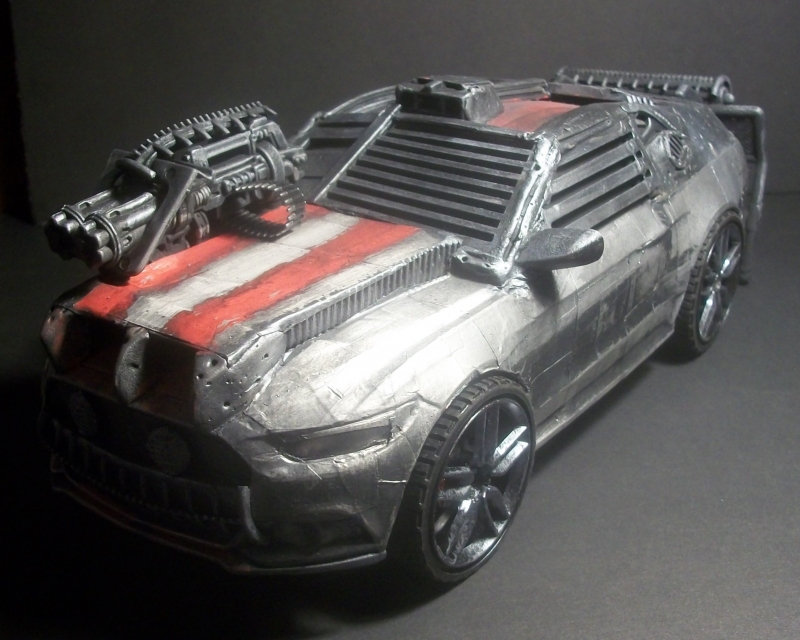 Frankenstein's Monster is a Mustang GT fastback with a V8 Roush 5.4 liter with a Ford Racing supercharger, a NOS unit, and armed with dual 30MM belt fed machine guns, napalm, oil slick, smokescreen, and a detachable rear 6" solid steel plate called the "The Tombstone".