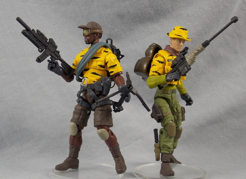 The Tiger Force Alpine and Crosshair 2-pack was one of the first that I bought as an adult collector. Despite some flaws, mostly with Alpine (the orange skin tone, just to name one), I liked the original figures. When I tackled these customs, I wanted to change up the color schemes a bit and go full-on Tiger Force. I swapped the tans for yellow and adjusted the rest of the colors accordingly.