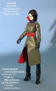 As with Lady Jaye, Hasbro didn't give us a Renegades Baroness figure. This is my take on that version, with a few design and color changes to accommodate the figure parts.