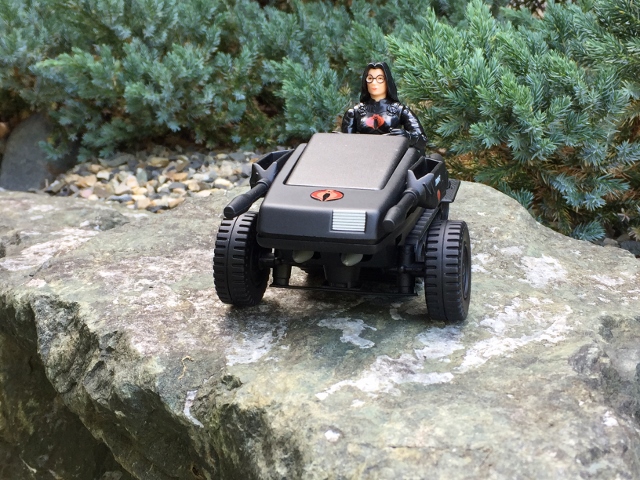 During a raid on a GI JOE Artic base, Cobra found a payload of brand new Polar Battle Bears. Most of which were just repaint in Artic Cobra camouflage and used by the Snow Serpents. The Baroness decided to a few customized into an ATV type vehicle. Front wheels now replaced the skis and missile launchers replace the lower guns. 30mm cannons were added to both sides and a sport exhaust system was added. The Baroness wanted them painted in her favorite color of black. The Black Bears are small but a real asset to the Cobra army.
