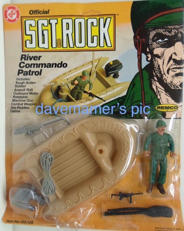 Loosely based on the D.C. comics series, Sgt. Rock toys were produced by Remco in 1981-82. The 3 3/4" product line included figures, vehicles and playsets. Sgt Rock was the only named character in the first series. Other figures were simply known by their specialty like Ranger, Gunner, etc. A year later, Remco created a new enemy for the toy series. These consisted of repainted Sgt. Rock toys and featured a logo of a yellow snake. Apparently, "The Bad Guys" were enemies of Sgt. Rock, G.I. Joe, M.A.S.H. and "all mini action soldiers". Some Sgt. Rock accessories and vehicles would later be repainted and reused by Remco for their American Defense series.
