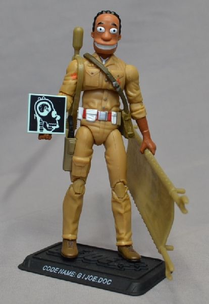 This figure was a part of my second series of Simpson crossover customs using LEGO minifigure heads and accessories. Dr. Julius Hibbert was an absolute no brainer when it came to choosing a character in the Joe realm. The hardest part on this one was matching the brown Lego head with paint for the forearms. Dr. Hibbert would fit right in on the Joe squad with his calm demeanor and medical competence. If they make a Dr. Riviera head, I may have to make him into Lifeline.