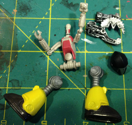 BatMITE has been one of those customs that has hung around forever. I initially had the idea during 2015's Custom Celebration, but just couldn't work it in. The genesis of the idea was the yellow Imaginext boots. I thought it would be fun to scale a BAT down to work with those feet. Enter the SW robot and it all worked out with just a few modifications and paint apps. The hardest part of this custom was probably shrinking down the BAT chest logo, printing it out and applying it.