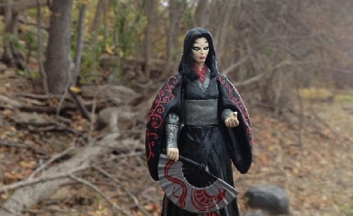 Another figure in my set of Feudal Japan era Cobras. This one was a fun challenge, mostly because I decided to maintain the patterning on the base figures arms. Fortunately it was sculpted, so I could just follow that. I also wanted to avoid having her be a ninja or a Geisha, which made the transposition of the basic Baroness look a bit more challenging. I suppose that beyond the color scheme she's not really visibly Baroness, but if you put her with the others I think it becomes clear who she is.