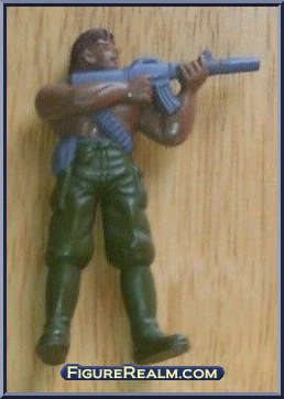 I loved army men as a kid. I probably had about a hundred of these plastic guys and they got at least as much play time as my Joes. So when GUTS! were released, I jumped at the chance to collect some. The TV commercial was really cool too. Aside from the size and the paint, the thing that set these apart was the styling. These little guys looked like they jumped out of 80's action movies like Rambo or Commando. Also, each one had a name and a one line bio on the back of the packaging.