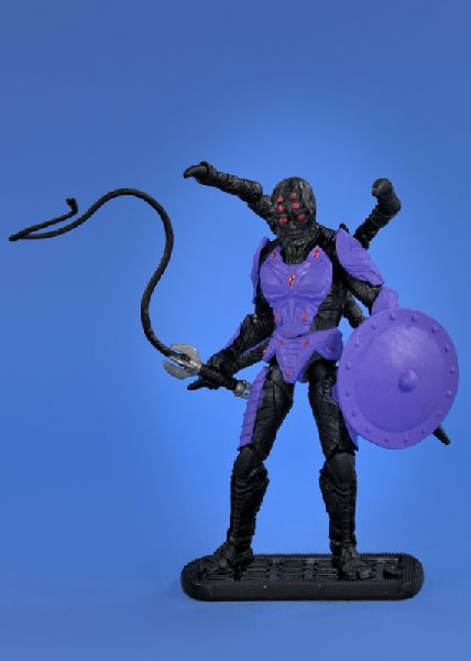 I updated the design here a bit, foregoing the helmet and trying to make his body more organic, and his armor more ornate. He's got a bit of a MOTU Webstor influence to his look, with the additional (fully posable!) legs. An 80's villain I've wanted to tackle for some time, started and completed during CCX. He doesn't have a torso joint, but does have a swivel waist now (with fixed hips) bringing him mostly in-line with GI Joe articulation.