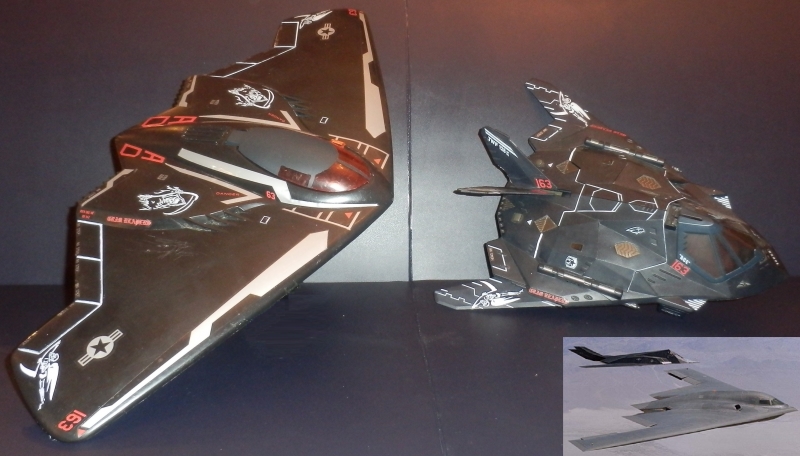 "Following the development of the GI Joe Advanced Tactical Fighter program and the successful deployment of stealth technology in the GI Joe SkySweeper spy plane, the research was applied towards creating a strategic bomber capable of penetrating anti-aircraft defenses, deploying conventional and strategic mass destruction weapons. The result was the GI Joe Advanced Technology Bomber (ATB) - a single seat derivative of the USAF B2 Spirit.