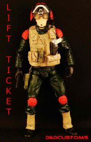 Custom sculpted and painted with professional non toxic sculpy and water based acrylic paints. D&DCUSTOMS PRESENTS - CUSTOM GI JOE MARVEL LEGENDS BLACK SERIES STYLE 6" 1:12th SCALE LIFT TICKET Tomahawk Helicopter Pilot.