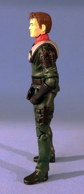 I'm finally getting around to hammering out the handful of OG13 characters of which I'd never made customs. Instead of working in ARAH format, I went with NS/25A because there were certain parts I wanted to use. I had hoped that Hasbro would use the 25A Cobra Commander arms and legs when they got around to making Flash and/or Grand Slam, but it didn't happen. The NS Dusty torso was horrible for a desert trooper, but looks sci-fi enough to work for a laser trooper. The head is a cast of a great Mego head, The Black Hole's Dan Holland, which was based on the actor Robert Forster. The parts come together to give Grand Slam a lean, spindly look. The shoulders are a bit too broad, but that's okay.