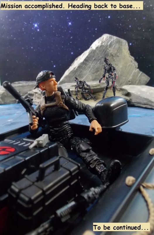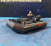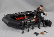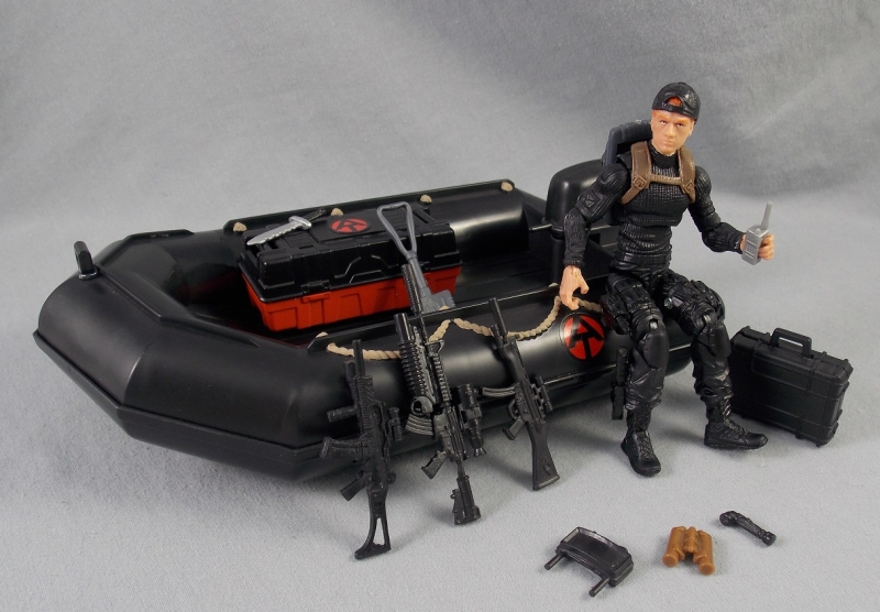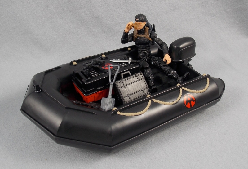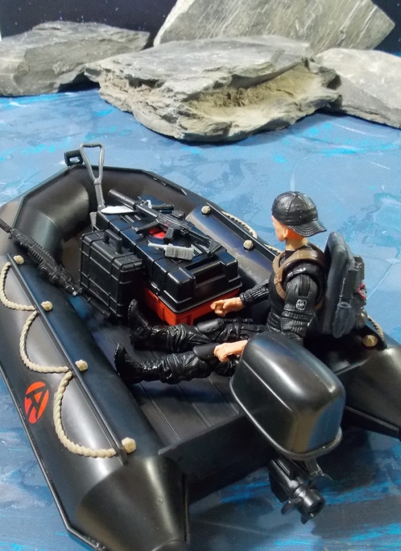 The Adventure Team Seawing Infiltration Craft is about as LBC as you can get for a vehicle. The original zodiac was already black. I added the front ring to allow it to be towed and painted the ropes on the sides. After that, it was simply a matter of collecting all the accessories.