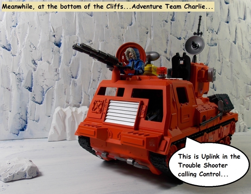 The original Trouble Shooter was a fun tracked vehicle that had communication screens and antennas. I stripped the Corps launcher of its missiles for a previous project and had the base vehicle sitting around. When Dusty79 mentioned that he would like to do an Adventure Team project, I started thinking of ways of using the remaining vehicle shell. I considered painting it white and making it a straight up arctic vehicle, but creating an updated Trouble Shooter was more fun. Also, it can still be used in the Arctic, but also in other environments this way.