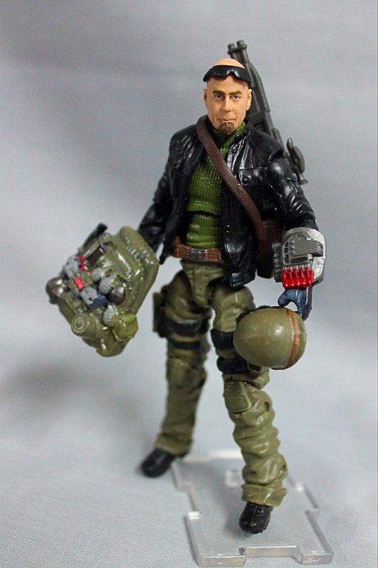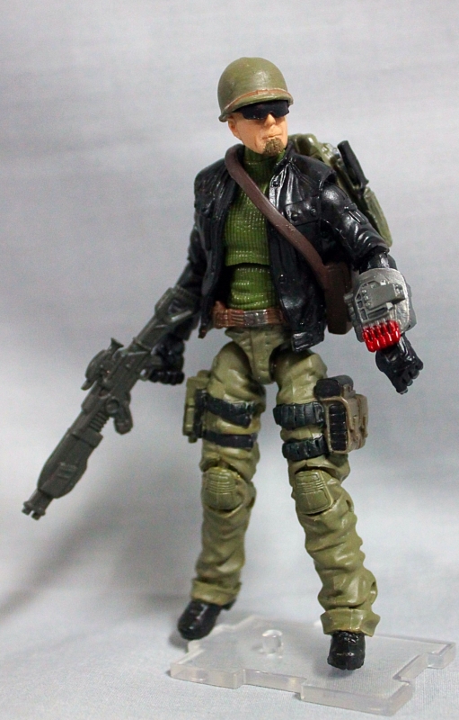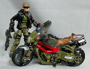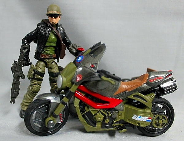 It's a custom of me? Sure why not? It's the last Resurgence. I added some scruff for chin hair, and a leather jacket for riding a motorcycle, something I enjoy quite a bit. Not alot of options for bald Joe figures, so I went with the movie Colton head. I tried to tie in my hobby of riding with the custom, so making a new version of the Mirage cycle was a fun custom as well, a little bit of scrap parts here and there gave me a new toy to ride around in.