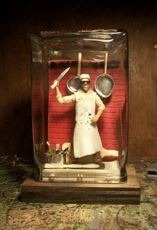 This was a project that took on a life of it's own. The crazy chef is my friend and coworker. He has helped me learn how to cast and made me a custom knife. I made him this figure as a thanks.