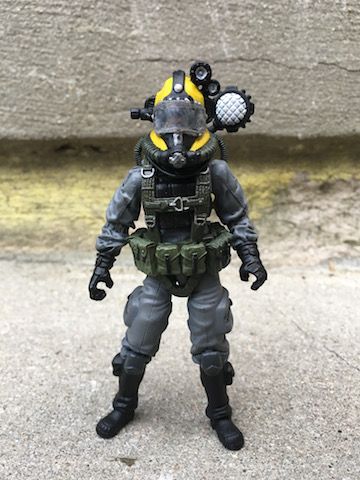 This summer I was on a deep sea diver kick, mainly because I realized I have a ton of dive gear and parts. This one was built entirely around the helmet. It came off a Corps figure. I added a piece of blister plastic to make "glass" then built the figure up from there. I used an image of a deep sea dive suit as reference for parts and paint. I am really happy with how this came out and would love to make a second one.