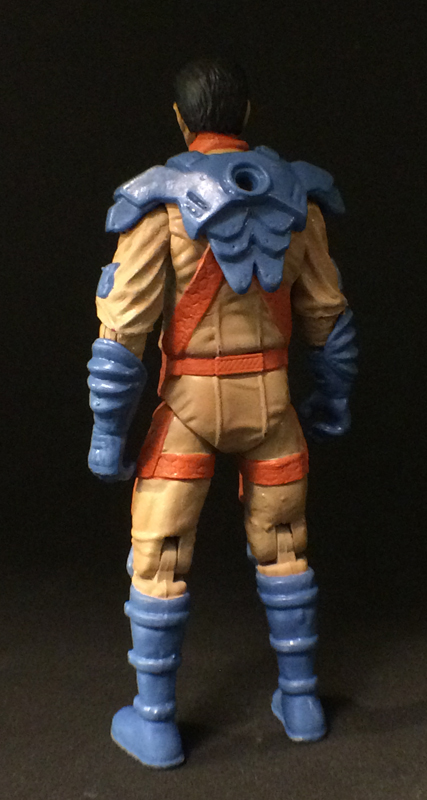 Julio Lopez was the driver of the MASK Firefly. The first version of Julio Lopez was decked out in an armored flightsuit, as his dune buggy would transform into an aircraft. I worked up the parts for this figure as I worked up a flightsuit Cobra Commander custom, so many of the parts leftover from one figure were used for the other.