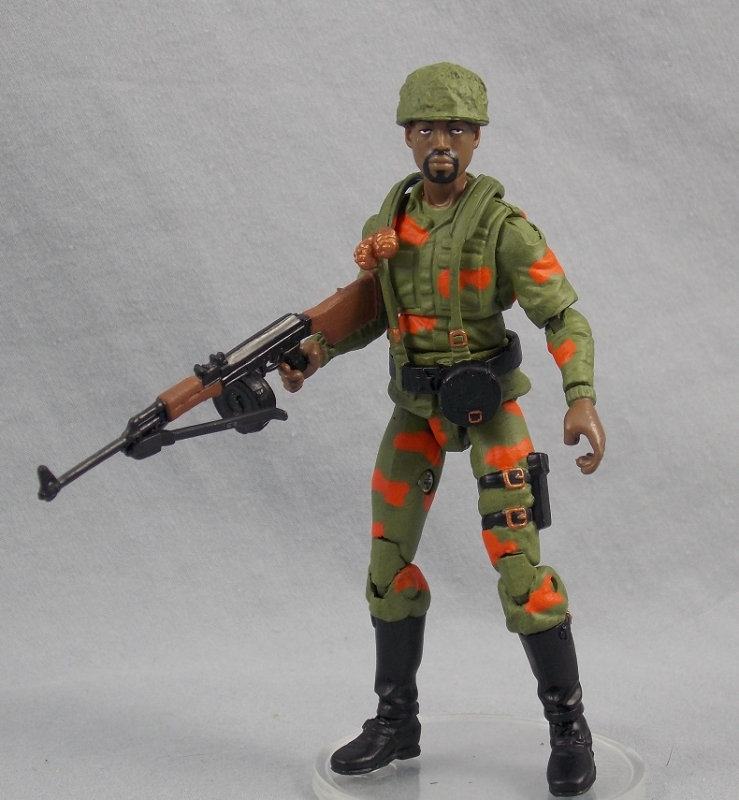 The 1988 line included figures that were a bit more generic (that had less flair) than the 1997 ones, but are interesting in an Original 13 sort of way. Mapman Jackson was the last of three Bronze Bombers that I built for Retro Toy Chest II. Like Shaka Johnson, he has an Original 13 feel, but is different from the others because of his boots, his canopy helmet and the snazzy orange camoflage on his uniform.