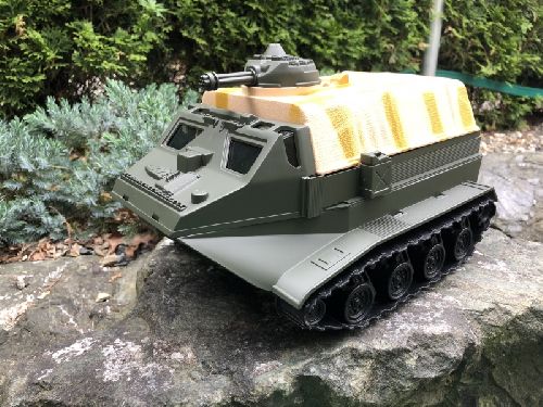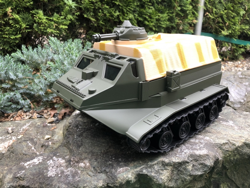 When I built the Cobra version of this I knew I had to do a GI JOE one as well. For this one I wanted it to look as close to the original as possible. I went with Tamiya Olive Drab, which matches the classic green pretty well. I then cut down the canopy but didn't paint it. I also added a bigger barrel on the cannon and painted the interior tan. Then just gave it a few classic GI JOE stickers from Cobrastickers.