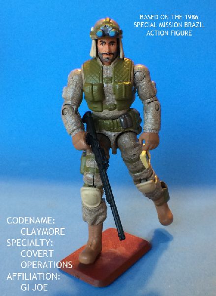Claymore was originally included with the Special Mission Brazil set in 1986. The figure was made from parts of other figures, but was a new character.