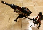 The Obliterator is one of the deadliest weapons in the Iron Grenadier arsenal. Using electromagnetic propulsion as opposed to conventional propellants the Obliterator achieves much greater muzzle velocity, speeds in excess of 5,400 mph. This translates to greater effective range and greater kinetic energy transference upon projectile impact. Coupled with a high explosive round, the Obliterator is a terror on the battlefield.