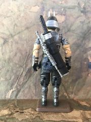 I added faux leather straps to the sheath of the sword, so he can mount the riffle to it.