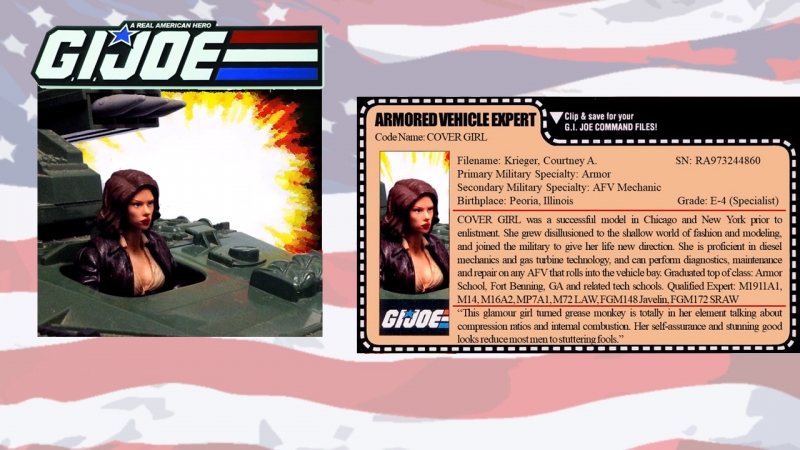 I like to think of Cover Girl as being qualified to drive any armored vehicle. Thus, she could even serve as an alternative tank driver.