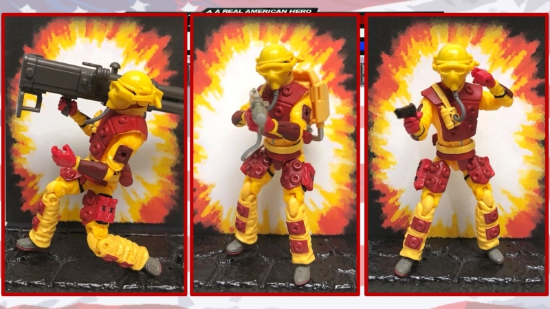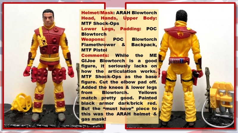 I think the ME Blowtorch is a good sculpt, but the sculpting limits the range of articulation. So, I wanted a Blowtorch that could hold his weapons better.
