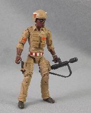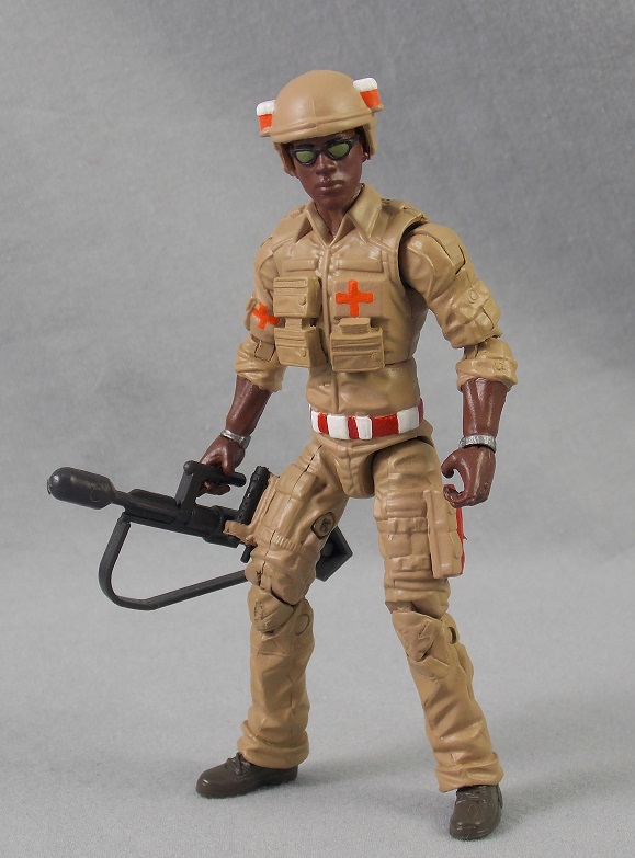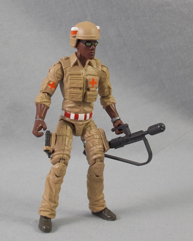 A friend of mine gave me a couple of his Joes when he got tired of them when we were kids. That is how I ended up with Doc and Major Bludd. These were not figures that I would have bought with my allowance or put on a birthday wish list. Unfortunately, he did not take very good care of his toys. So, I had most of a Doc as a kid. The figure was intact, but worn and he gave me a chewed-up stretcher and a broken flare launcher. Doc did not get much use in my GI Joe play. His joints were so loose that he could not stand up, so he usually ended up being the first casualty in firefights. That way he could just lay there on the battlefield while the action happened all around him.