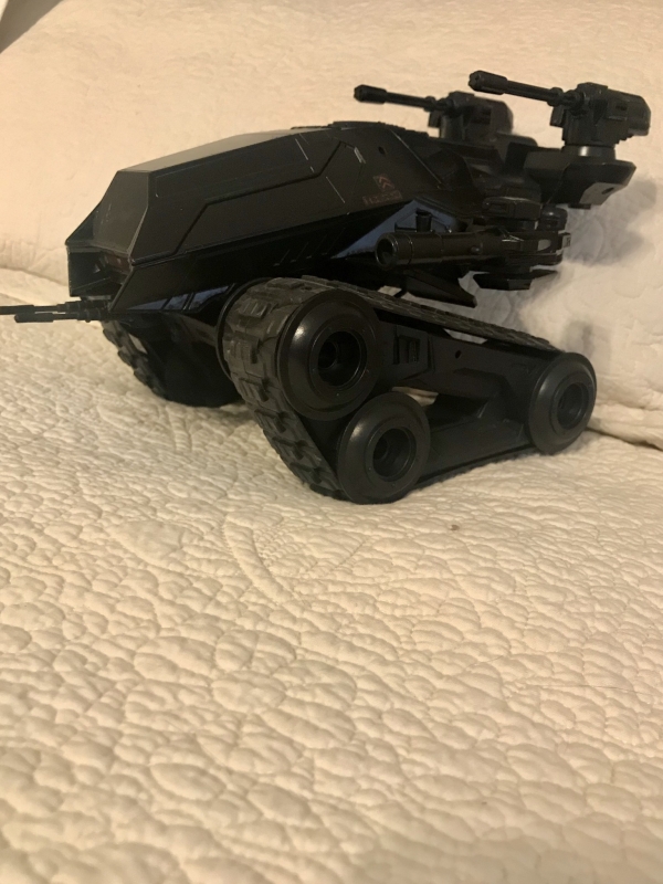 This upgraded HISS features 2 linked firing guns on the top platform. Now controlled by eye movement scanners in the driver's helmet that make the gun track as he scans his HUD (Heads Up Display) to acquire targets while driving. He also still has stick firing control of the fixed chin gun. With the driver controlling the machine guns, the gunner is now free to spend his time acquiring targets for the 2 side mounted projectile launchers.