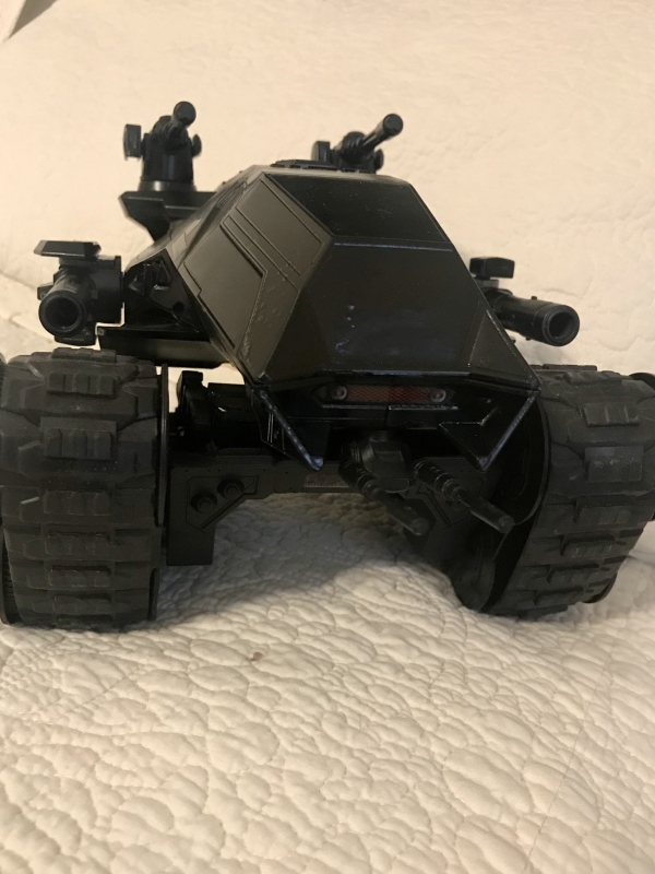 The new Cobra HISS is impressive to say the least. Gone are the dangerous glass canopies, and week armor. Kept was the ingenious tread design, height adjustable weapons platform, and added was a completely armored canopy and gunner's position. Now Cobra had a great tank! But, when the newest version was given to the troops of Cobra's 788th "Blue" Division, they immediately saw the customizable weapons positions and got to work on a hunter killer specially suited for their front lines missions. Thus the HISS V - H.A.C.K. ( Heavy Assault Configured Killer ) was born. The Crimson Shadow Guard has modified the H.A.C.K. even further and they call these their Black Magic HISS!