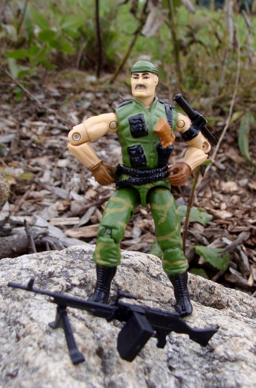 We received a Gung-ho in 83, which was an unimpressive figure in my opinion. We received the Marine Dress Blues version in '87, and while that was cool, he wasn't much fun to play with. We didn't see another one until 92 and 93, which leaves a void for a few years to be filled with a Gung-ho figure that can used in the field. This figure is intended to fit in with my '89 series figures.